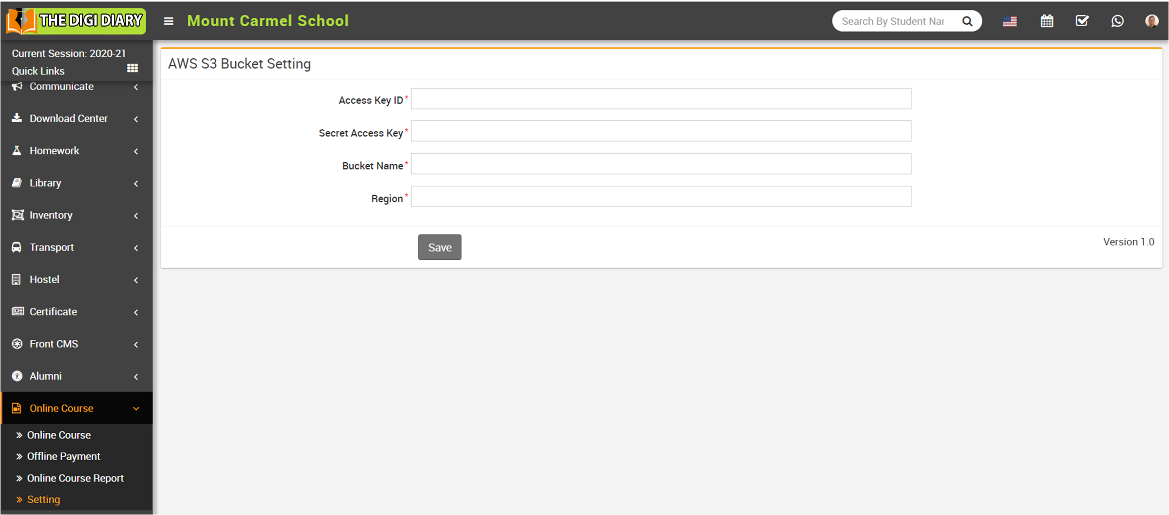 Now enter Access Key ID, Secret Access Key, Bucket name and Region in your setting page and then click on the Save button.