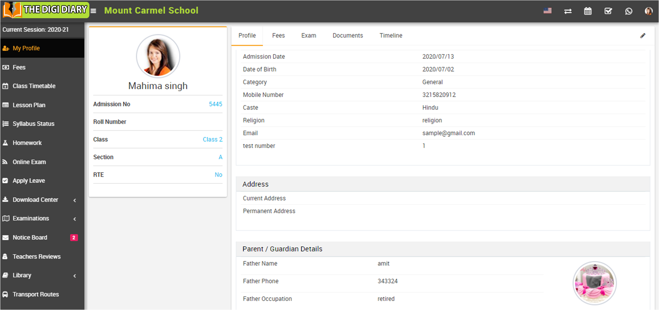 To update student profile login from the student panel and click on the My Profile link present at sidebar menu. This will redirect you in the student profile page, here click on the Edit icon present in the top right corner. This will redirect you in the edit student profile page.