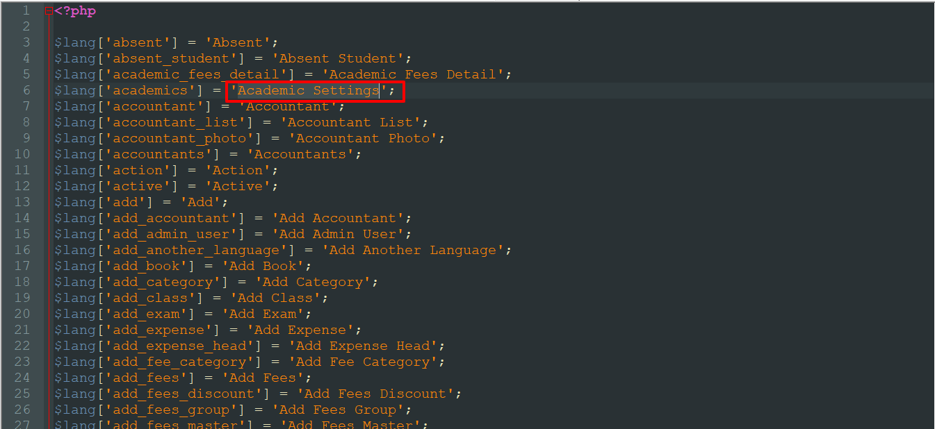 Note- Please make sure you have done changes in proper format (like Academics Settings must be under single inverted commas) otherwise code will cause an error.
